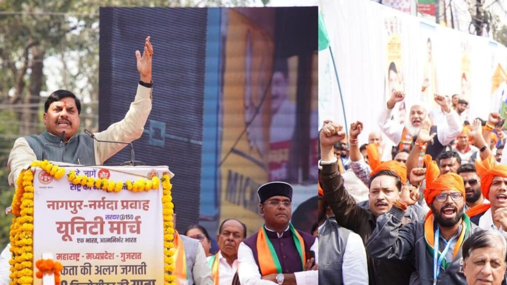 मार्गभर भारत माता की जय और सरदार वल्लभभाई पटेल अमर रहे के जयकारे गूंजते रहे, जिसने माहौल को पूर्णतः देशभक्ति और एकता की भावना से भर दिया।छावनी चौराहा पहुंचने पर नागरिकों ने मुख्यमंत्री डॉ. यादव का विशेष स्वागत करते हुए उन्हें भगवान कृष्ण की प्रतिमा और तलवार भेंट की। यह सम्मान भारतीय परंपरा, वीरता और सांस्कृतिक एकता का प्रतीक माना गया।सरदार पटेल की जयंती पर आयोजित यह यूनिटी मार्च न केवल उन्हें विनम्र श्रद्धांजलि है, बल्कि भारत की एकता, अखंडता और सहयोग की भावना को सशक्त रूप से प्रदर्शित करता है।