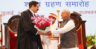 भोपाल। मध्यप्रदेश के राज्यपाल श्री मंगुभाई पटेल ने गुरुवार को राजभवन स्थित सांदीपनि सभागार में आयोजित शपथ ग्रहण समारोह में मनोनीत न्यायमूर्ति श्री संजीव सचदेवा को मध्यप्रदेश उच्च न्यायालय के 29वें मुख्य न्यायाधिपति के रूप में शपथ दिलाई।शपथ ग्रहण के उपरांत राज्यपाल श्री पटेल एवं उप मुख्यमंत्री श्री जगदीश देवड़ा ने नव नियुक्त मुख्य न्यायाधिपति को पुष्पगुच्छ भेंट कर बधाई एवं शुभकामनाएं दीं।समारोह का संचालन मुख्य सचिव श्री अनुराग जैन ने किया। उन्होंने राष्ट्रपति द्वारा न्यायमूर्ति संजीव सचदेवा को मध्यप्रदेश उच्च न्यायालय का मुख्य न्यायाधिपति नियुक्त किए जाने की अधिसूचना का वाचन किया।इस अवसर पर खेल एवं युवा कल्याण मंत्री श्री विश्वास कैलाश सारंग, पिछड़ा वर्ग एवं अल्पसंख्यक कल्याण राज्य मंत्री (स्वतंत्र प्रभार) श्रीमती कृष्णा गौर, नेता प्रतिपक्ष श्री उमंग सिंगार, विधायक श्री रामेश्वर शर्मा, हरियाणा के पूर्व राज्यपाल श्री कप्तान सिंह सोलंकी, भोपाल नगर निगम अध्यक्ष श्री किशन सूर्यवंशी, लोकायुक्त श्री सत्येन्द्र कुमार सिंह, मुख्य सूचना आयुक्त श्री विजय यादव, मानवाधिकार आयोग सदस्य श्री राजीव टंडन, सहित शासन-प्रशासन के वरिष्ठ अधिकारी, न्यायालय एवं बार के सदस्य, विभिन्न आयोगों के पदाधिकारी एवं जनप्रतिनिधि उपस्थित रहे।