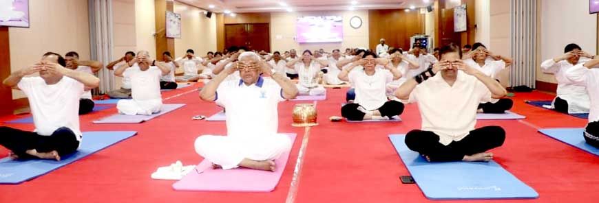 भोपाल, 21 जून 2025 — मध्यप्रदेश के राज्यपाल श्री मंगुभाई पटेल ने अंतर्राष्ट्रीय योग दिवस के अवसर पर आयोजित सामूहिक योगाभ्यास कार्यक्रम में भाग लिया और योग के विभिन्न आसनों, प्राणायाम एवं ध्यान क्रियाओं का अभ्यास किया।कार्यक्रम की शुरुआत में राज्यपाल श्री पटेल का पुष्पगुच्छ भेंट कर आत्मीय स्वागत किया गया। इसके उपरांत उन्होंने ग्रीवा चालन, स्कंध संचालन, ताड़ासन, वृक्षासन, पादहस्तासन, कटिचक्रासन, दण्डासन, वज्रासन, तितली आसन, उष्ट्रासन, शशांकासन, उत्तानमंडूकासन, वक्रासन, मकरासन, सेतुबंध आसन, उत्तानपादासन, पवनमुक्तासन और शवासन सहित विभिन्न योगासनों का अभ्यास किया।आसनों के उपरांत उन्होंने कपालभाति, अनुलोम-विलोम एवं भ्रामरी जैसे प्राणायाम किए।