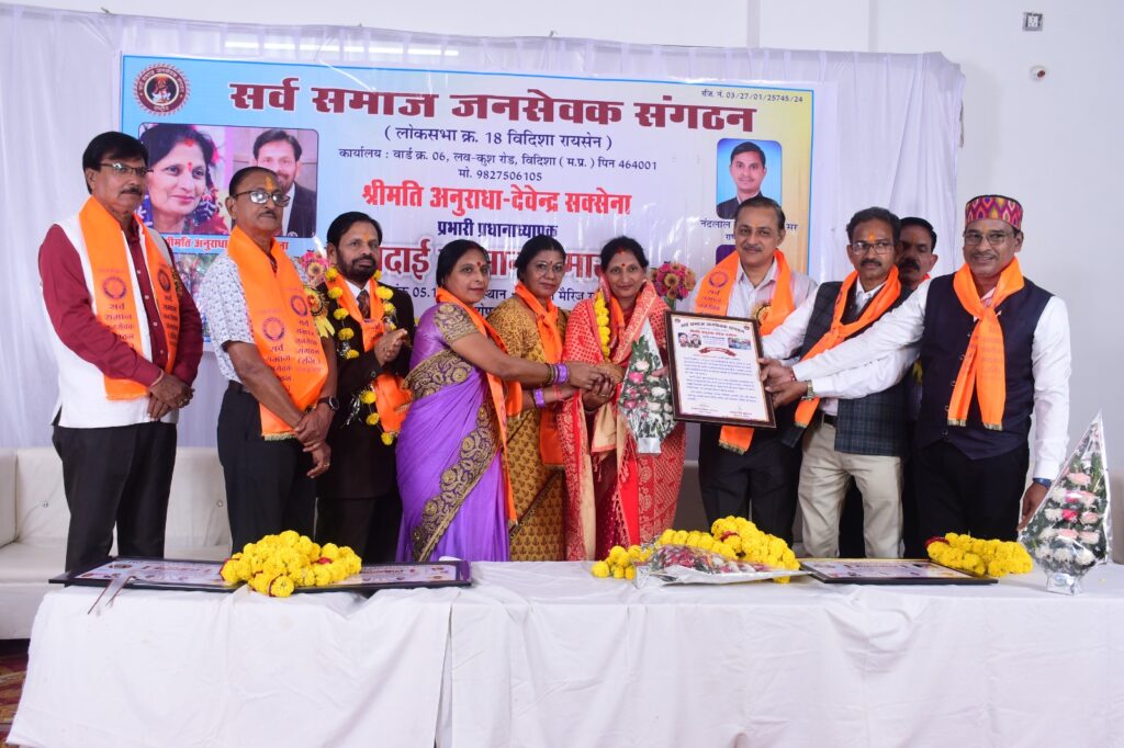 सर्व समाज जनसेवक संगठन द्वारा आयोजित समारोह में संयुक्त संचालक नर्मदा पुरम संभाग के संचालक मनीष वर्मा जी के मुख्य अतिथि एवं भारतीय डाक कर्मचारी संघ के पूर्व राष्ट्रीय अध्यक्ष मनमोहन शर्मा जी के विशेष आथित्य और राष्ट्रीय अध्यक्ष श्री नंदलाल यादव यादव सर की अध्यक्षता प्राचार्य श्रीमती अलका बागरी पूर्व प्राचार्य श्री मुकेश श्रीवास्तव एवं पूर्व प्राचार्य आर पी गुप्ता पूर्व प्राचार्य शिव नारायण रैकवार पूर्व प्राचार्य टी एन बारसी जी प्राचार्य नरेंद्र वर्मा जी प्राचार्य ब्रज श्रीवास्तव जी प्राचार्य डायट मधुबाला प्रधान के आथित्य में शिक्षिका श्रीमती अनुराधा देवेंद्र सक्सेना विदाई सम्मान , शाल, श्रीफल, बैच ,प्रशस्ति पत्र, एवं सम्मान पत्र का वाचन कर उपहार भेंट कर सम्मानित किया गया स्वागत एवं विदाई गीत का गायन शिक्षिका श्रीमती संतोष लोधी जी ने किया कार्यक्रम मैं सैकड़ो कर्मचारी अधिकारी उपस्थित हुए स्वागत समिति के संयोजक मनोज शर्मा के साथ राजेश दीक्षित खुशी लाल जी चौकसे माधव सिंह तोमर हरि सिंह चौहान रामबाबू जी विश्वकर्मा प्रेम नारायण चिड़ार दीपक जैन भंवरलाल लोधी आशीष बाजपेई महेंद्र मौर्य मनमोहन सोनी विधानसभा अध्यक्ष मनोज कुशवाहा मानसिंह लोधी कोमल सिंह मालवी राजेश माथुर राकेश जैन आदि ने मंचासीन अतिथियों का स्वागत तिलक, बैच, फूल माला, वस्त उपहार , पुष्प गुच्छ, सम्मान पत्र, उपहार के रूप में भेंट कर सभी मंचासीन अतिथियों को सम्मानित किया गया संचालन उमराव सिंह कुशवाहा द्वारा किया गया